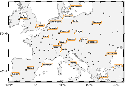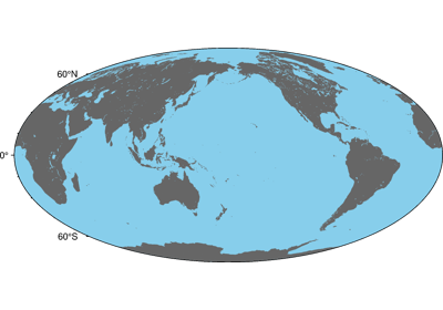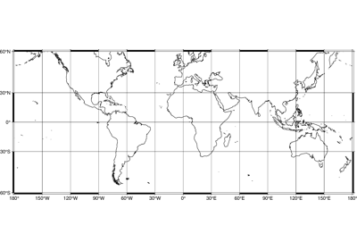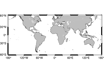 Creates a basic or fancy basemap with axes, fill, and titles. Several map projections are available, and separate tick-mark intervals for axis annotation, ticking, and gridlines can be specified.